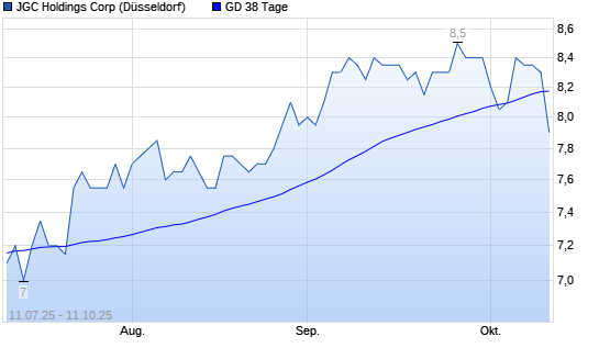 Mit dem Rücksetzer auf 8,15 EUR hat die JGC-Aktie am 10.10.2025 die 38-Tage-Linie nach unten gekreuzt.Die JGC-Aktie befindet sich seit dem 23.07.2025 im langfristigen ...weiterlesen
