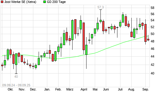 Mit dem Anstieg auf 50,20 EUR hat die JOST Werke-Aktie am 08.09.2025 die 200-Tage-Linie nach oben gekreuzt.