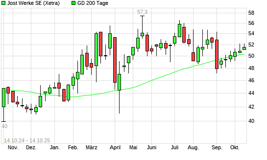 Mit dem Anstieg auf 50,60 EUR hat die JOST Werke-Aktie am 13.10.2025 die 200-Tage-Linie nach oben gekreuzt.