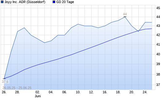 Mit dem Rücksetzer auf 42,20 EUR hat die JOYY-Aktie am 24.06.2025 die 20-Tage-Linie nach unten gekreuzt.