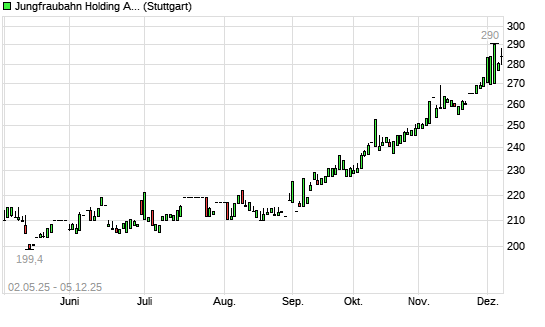 Mit dem Anstieg auf 285,50 EUR hat die JUNGFRAUBAHN HOLDING-Aktie (ISIN CH0017875789) am 04.12.2025 ein neues All-Time-High erreicht und damit den Kurs vom 03.12.2025 eingestellt.