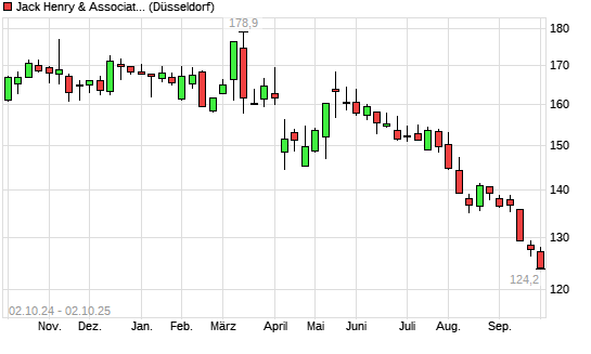 Mit dem Rücksetzer auf 126,35 EUR hat die Jack Henry & Associates-Aktie (ISIN US4262811015) am 01.10.2025 ein neues 3-Jahres-Tief erreicht und damit den Kurs vom 24.09.2025 eingestellt.
