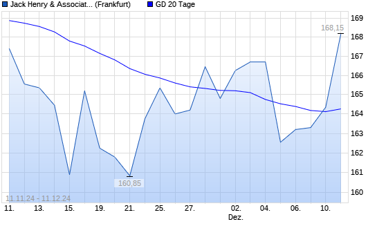 Mit dem Anstieg auf 164,35 EUR hat die Jack Henry & Associates-Aktie am 10.12.2024 die 20-Tage-Linie nach oben gekreuzt.