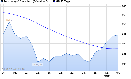 Mit dem Anstieg auf 139,20 EUR hat die Jack Henry & Associates-Aktie am 03.03.2026 die 20-Tage-Linie nach oben gekreuzt.
