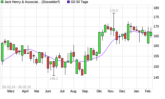 Mit dem Anstieg auf 168,80 EUR hat die Jack Henry & Associates-Aktie am 04.02.2025 die 50-Tage-Linie nach oben gekreuzt.