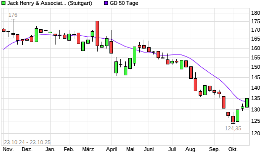 Mit dem Anstieg auf 134,65 EUR hat die Jack Henry & Associates-Aktie am 22.10.2025 die 50-Tage-Linie nach oben gekreuzt.