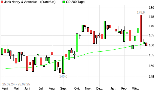 Mit dem Rücksetzer auf 161,25 EUR hat die Jack Henry & Associates-Aktie am 24.03.2025 die 200-Tage-Linie nach unten gekreuzt.