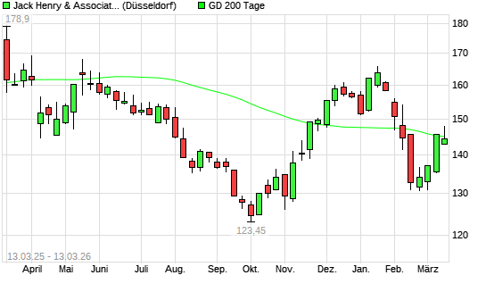 Mit dem Rücksetzer auf 143,80 EUR hat die Jack Henry & Associates-Aktie am 12.03.2026 die 200-Tage-Linie nach unten gekreuzt.