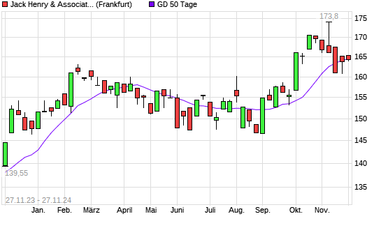 Mit dem Rücksetzer auf 164,00 EUR hat die Jack Henry & Associates-Aktie am 26.11.2024 die 50-Tage-Linie nach unten gekreuzt.