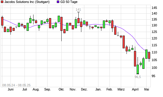 Mit dem Rücksetzer auf 105,00 EUR hat die Jacobs Engineering Group-Aktie am 07.05.2025 die 50-Tage-Linie nach unten gekreuzt.