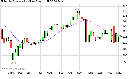 Mit dem Rücksetzer auf 116,00 EUR hat die Jacobs Engineering Group-Aktie am 06.03.2026 die 50-Tage-Linie nach unten gekreuzt.