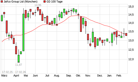 Mit dem Anstieg auf 13,31 EUR hat die Jafco-Aktie am 16.02.2026 die 100-Tage-Linie nach oben gekreuzt.