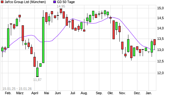 Mit dem Anstieg auf 13,01 EUR hat die Jafco-Aktie am 14.01.2026 die 50-Tage-Linie nach oben gekreuzt.