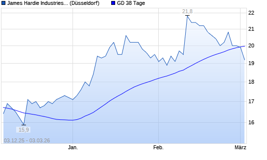 Mit dem Rücksetzer auf 19,60 EUR hat die James Hardie Industries-Aktie am 02.03.2026 die 38-Tage-Linie nach unten gekreuzt.