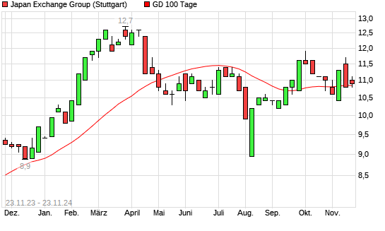 Mit dem Anstieg auf 10,60 EUR hat die Japan Exchange Group-Aktie am 22.11.2024 die 100-Tage-Linie nach oben gekreuzt.
