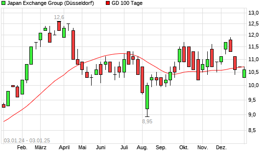 Mit dem Anstieg auf 10,80 EUR hat die Japan Exchange Group-Aktie am 02.01.2025 die 100-Tage-Linie nach oben gekreuzt.