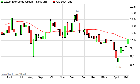 Mit dem Anstieg auf 10,10 EUR hat die Japan Exchange Group-Aktie am 09.05.2025 die 100-Tage-Linie nach oben gekreuzt.
