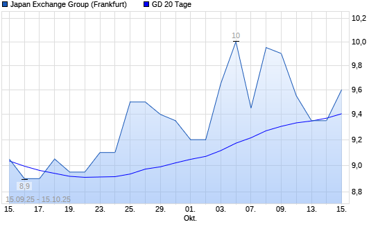 Mit dem Rücksetzer auf 9,35 EUR hat die Japan Exchange Group-Aktie am 14.10.2025 die 20-Tage-Linie nach unten gekreuzt.