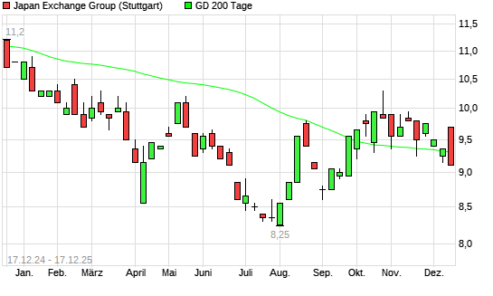 Mit dem Rücksetzer auf 9,10 EUR hat die Japan Exchange Group-Aktie am 16.12.2025 die 200-Tage-Linie nach unten gekreuzt.