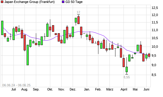 Mit dem Rücksetzer auf 9,35 EUR hat die Japan Exchange Group-Aktie am 05.06.2025 die 50-Tage-Linie nach unten gekreuzt.
