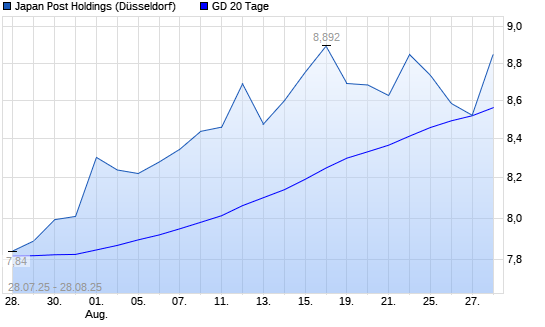 Mit dem Rücksetzer auf 8,51 EUR hat die Japan Post Holdings-Aktie am 27.08.2025 die 20-Tage-Linie nach unten gekreuzt.