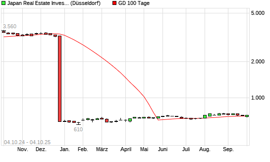 Mit dem Anstieg auf 725,00 EUR hat die Japan Real Estate Investment-Aktie am 03.10.2025 die 100-Tage-Linie nach oben gekreuzt.