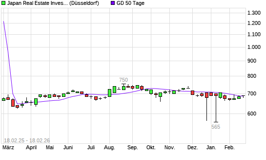 Mit dem Rücksetzer auf 690,00 EUR hat die Japan Real Estate Investment-Aktie am 17.02.2026 die 50-Tage-Linie nach unten gekreuzt.