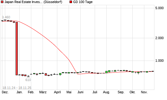 Mit dem Anstieg auf 730,00 EUR hat die Japan Real Estate Investment-Aktie am 17.11.2025 die 100-Tage-Linie nach oben gekreuzt.Die Japan Real Estate Investment-Aktie befindet sich seit dem 09.04.2025 ...weiterlesen