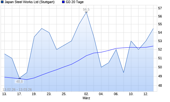 Mit dem Anstieg auf 52,50 EUR hat die Japan Steel Works-Aktie am 12.03.2026 die 20-Tage-Linie nach oben gekreuzt.