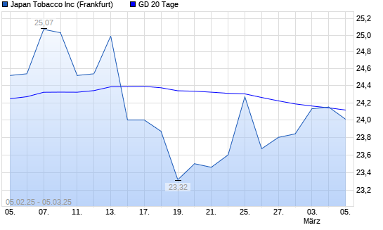 Mit dem Anstieg auf 24,15 EUR hat die Japan Tobacco-Aktie am 04.03.2025 die 20-Tage-Linie nach oben gekreuzt.