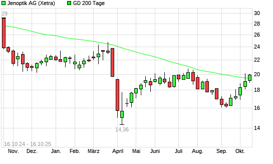Mit dem Anstieg auf 19,87 EUR hat die Jenoptik-Aktie am 15.10.2025 die 200-Tage-Linie nach oben gekreuzt.