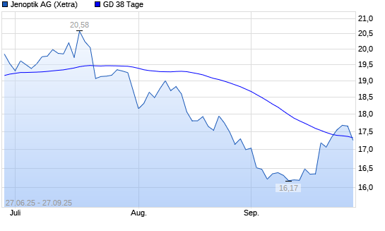 Mit dem Rücksetzer auf 17,26 EUR hat die Jenoptik-Aktie am 26.09.2025 die 38-Tage-Linie nach unten gekreuzt.