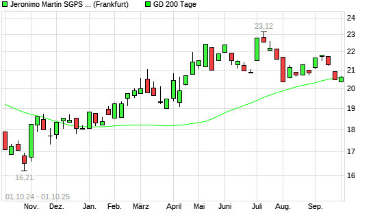 Mit dem Anstieg auf 20,64 EUR hat die Jeronimo Martins-Aktie am 30.09.2025 die 200-Tage-Linie nach oben gekreuzt.