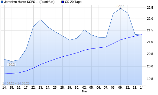 Mit dem Rücksetzer auf 21,32 EUR hat die Jeronimo Martins-Aktie am 13.05.2025 die 20-Tage-Linie nach unten gekreuzt.