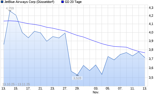 Mit dem Anstieg auf 3,83 EUR hat die JetBlue Airways-Aktie am 12.11.2025 die 20-Tage-Linie nach oben gekreuzt.