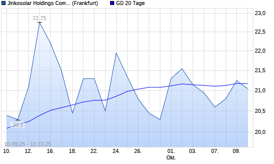 Mit dem Anstieg auf 21,25 EUR hat die Jinkosolar-Aktie am 09.10.2025 die 20-Tage-Linie nach oben gekreuzt.