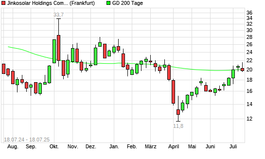 Mit dem Anstieg auf 19,94 EUR hat die Jinkosolar-Aktie am 17.07.2025 die 200-Tage-Linie nach oben gekreuzt.