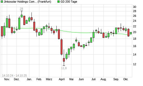 Mit dem Anstieg auf 19,78 EUR hat die Jinkosolar-Aktie am 13.10.2025 die 200-Tage-Linie nach oben gekreuzt.
