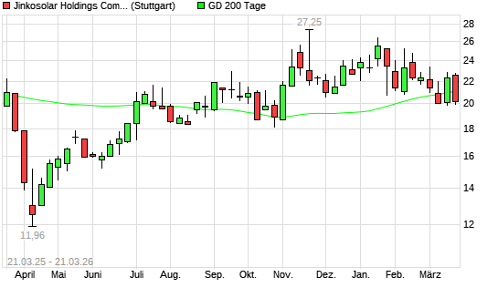 Mit dem Anstieg auf 21,35 EUR hat die Jinkosolar-Aktie am 20.03.2026 die 200-Tage-Linie nach oben gekreuzt.