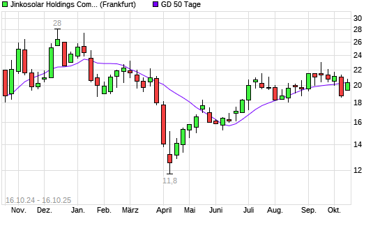 Mit dem Anstieg auf 20,55 EUR hat die Jinkosolar-Aktie am 15.10.2025 die 50-Tage-Linie nach oben gekreuzt.
