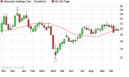 Mit dem Rücksetzer auf 19,52 EUR hat die Jinkosolar-Aktie am 21.10.2025 die 100-Tage-Linie nach unten gekreuzt.