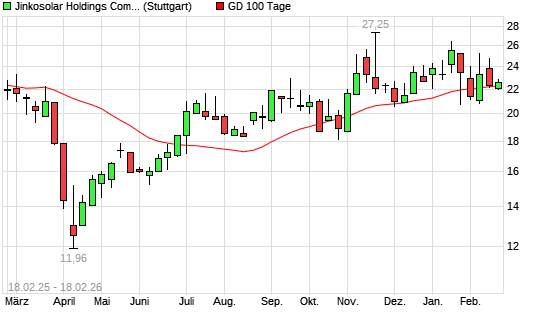 Mit dem Rücksetzer auf 22,10 EUR hat die Jinkosolar-Aktie am 17.02.2026 die 100-Tage-Linie nach unten gekreuzt.