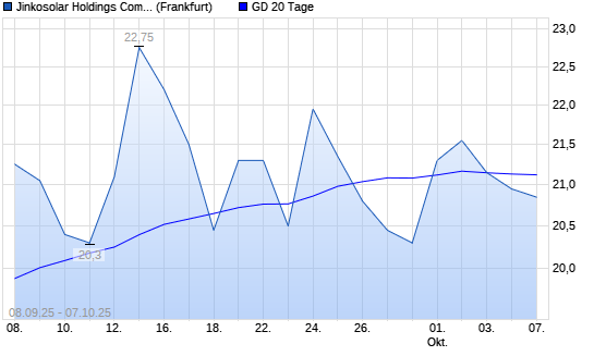 Mit dem Rücksetzer auf 20,95 EUR hat die Jinkosolar-Aktie am 06.10.2025 die 20-Tage-Linie nach unten gekreuzt.