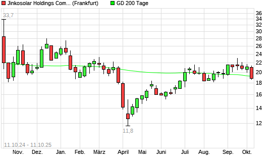 Mit dem Rücksetzer auf 18,82 EUR hat die Jinkosolar-Aktie am 10.10.2025 die 200-Tage-Linie nach unten gekreuzt.