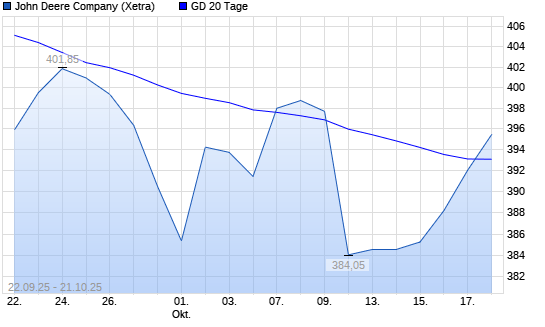 Mit dem Anstieg auf 398,30 EUR hat die John Deere-Aktie am 20.10.2025 die 20-Tage-Linie nach oben gekreuzt.