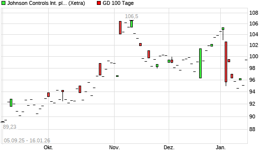 Mit dem Anstieg auf 96,78 EUR hat die Johnson Controls International-Aktie am 15.01.2026 die 100-Tage-Linie nach oben gekreuzt.