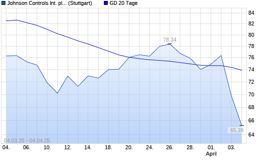 Mit dem Rücksetzer auf 73,41 EUR hat die Johnson Controls International-Aktie am 03.04.2025 die 20-Tage-Linie nach unten gekreuzt.
