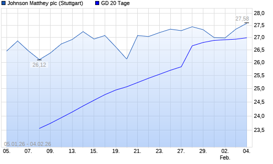 Mit dem Rücksetzer auf 26,62 EUR hat die Johnson Matthey-Aktie am 03.02.2026 die 20-Tage-Linie nach unten gekreuzt.