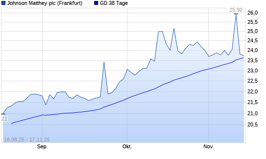 Mit dem Rücksetzer auf 23,74 EUR hat die Johnson Matthey-Aktie am 17.11.2025 die 38-Tage-Linie nach unten gekreuzt.