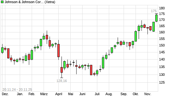 Mit dem Anstieg auf 175,18 EUR hat die Johnson & Johnson-Aktie (ISIN US4781601046) am 19.11.2025 ein neues 3-Jahres-Hoch erreicht und damit den Kurs vom 18.11.2025 eingestellt.